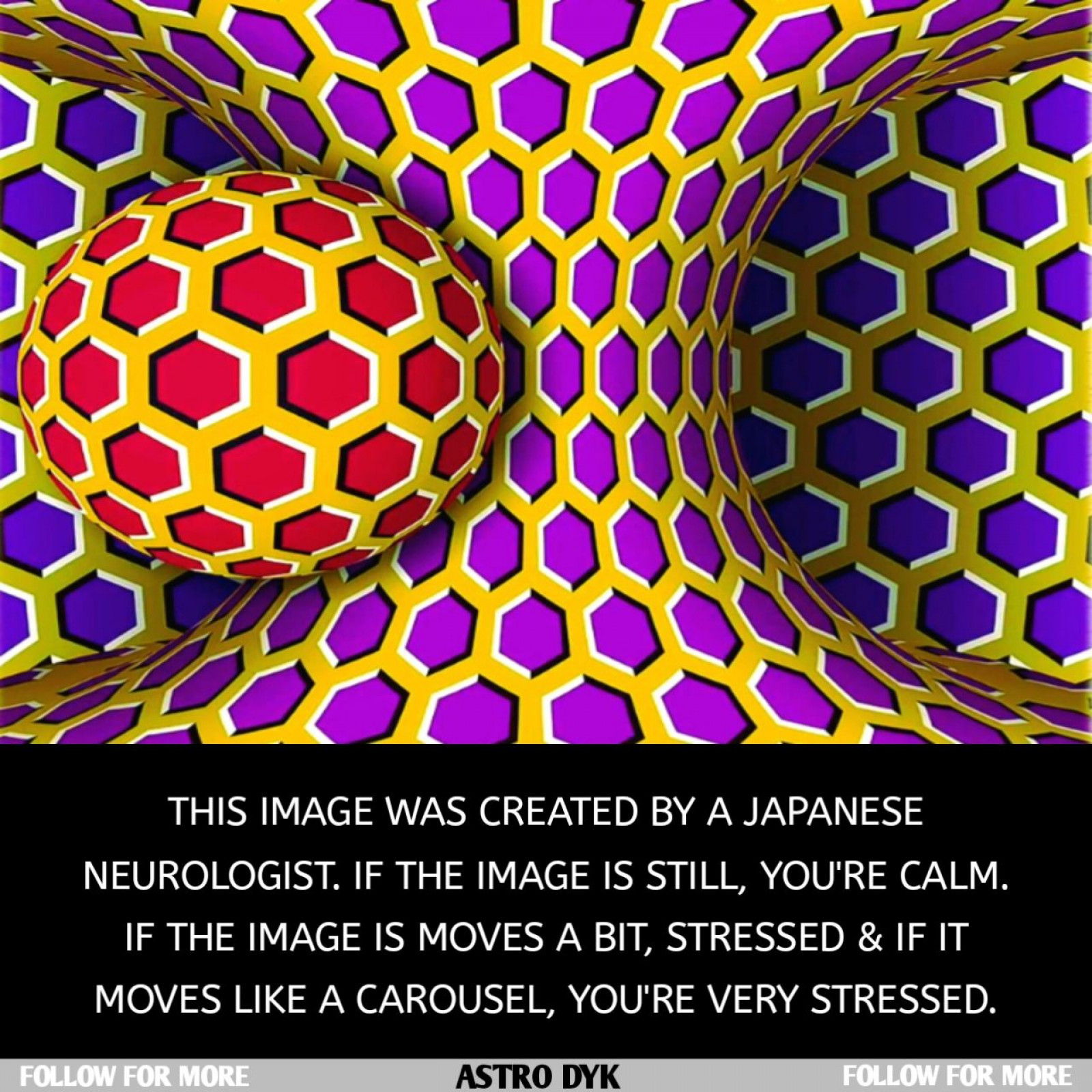 Note: This image was created by a Japanese Neurologist. If the image is still, you're calm. If the image is moves a bit, stressed and if it moves like a carousel, you're very stressed.